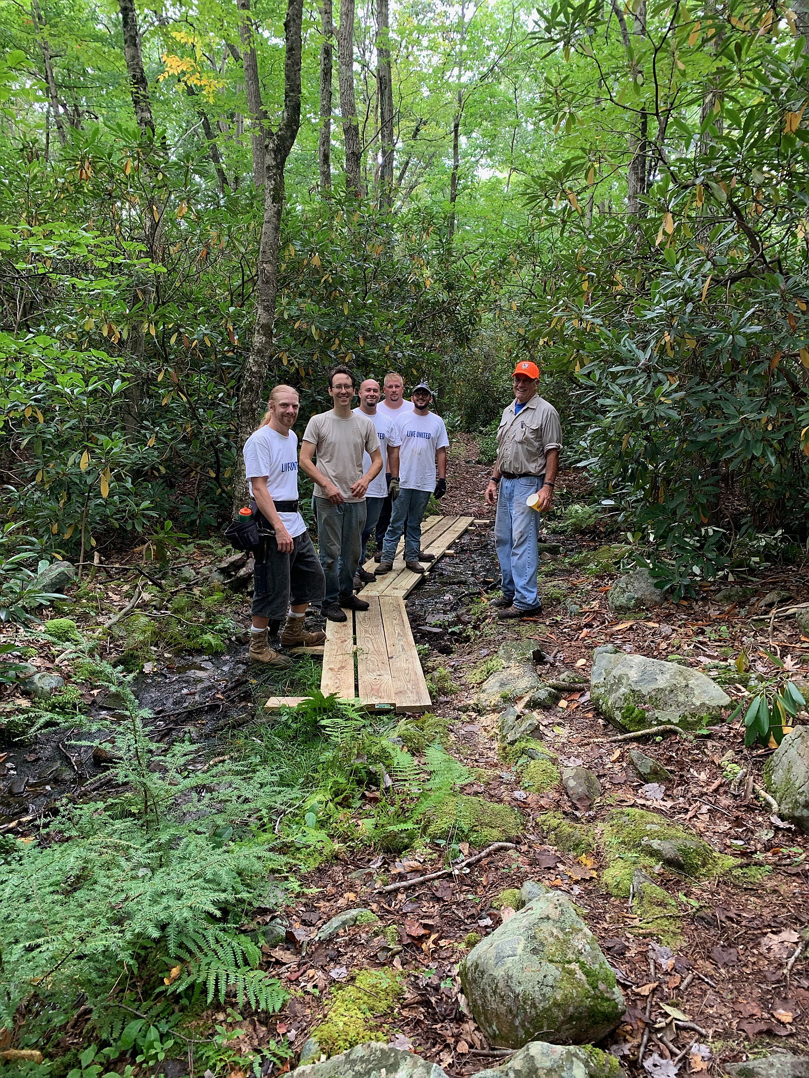 A quiet fall view of the Pocono Creek on the Learn Preserve and some dedicated volunteers building a boardwalk on the Kurmes Nature Preserve.