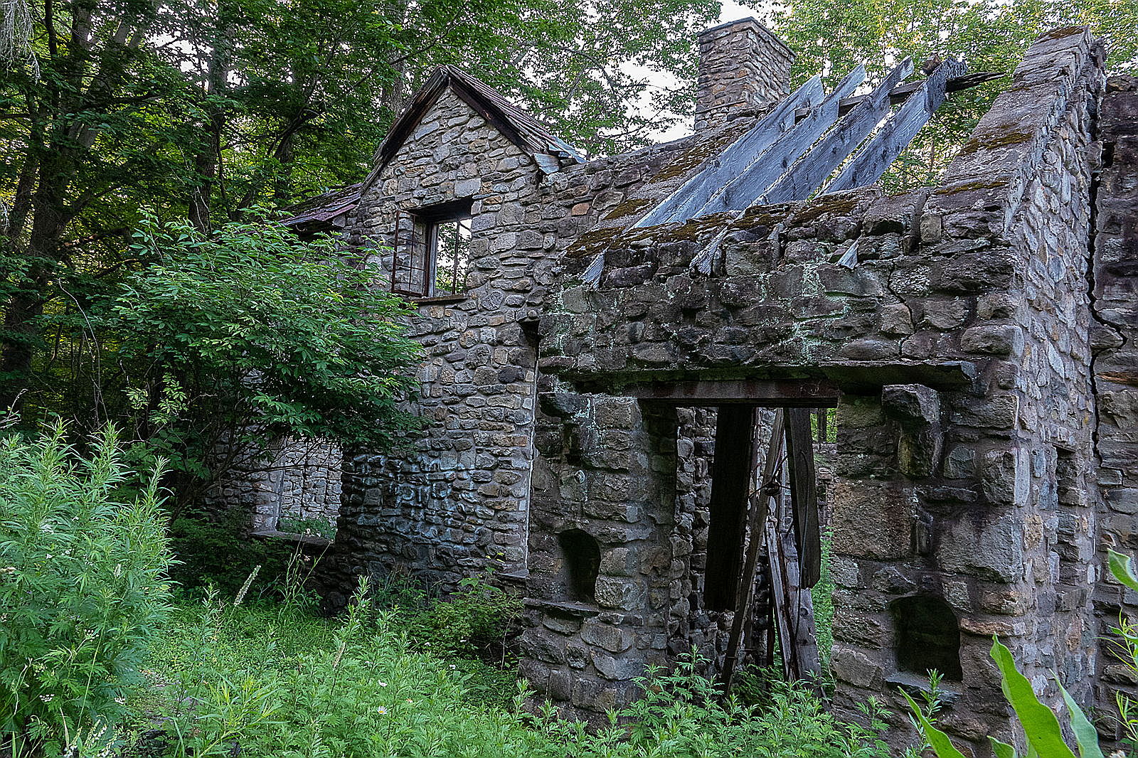 The tranquil lake at the Glen Run Nature Preserve and the ruins of the farmhouse at the Fieldstone Farm Nature Preserve.