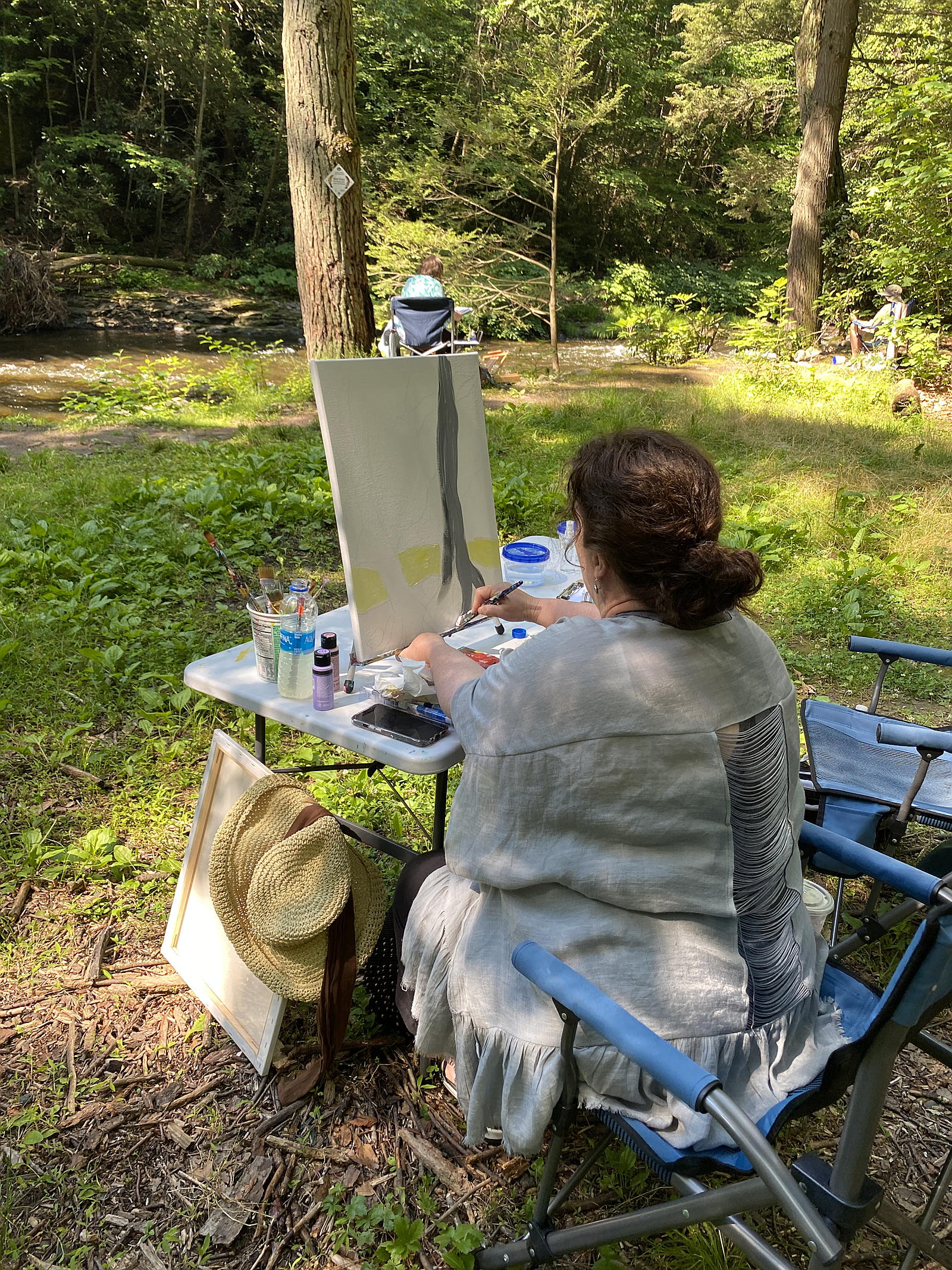 Ann Foster enjoying some plein air painting at the Pomeroy Nature Preserve, Stewardship Manager Matt Schultz leading a "sneak peek" hike on the Robert Mader Nature Preserve, and Chris Capurso showing off a brown trout at the Rail Gap Nature Preserve.